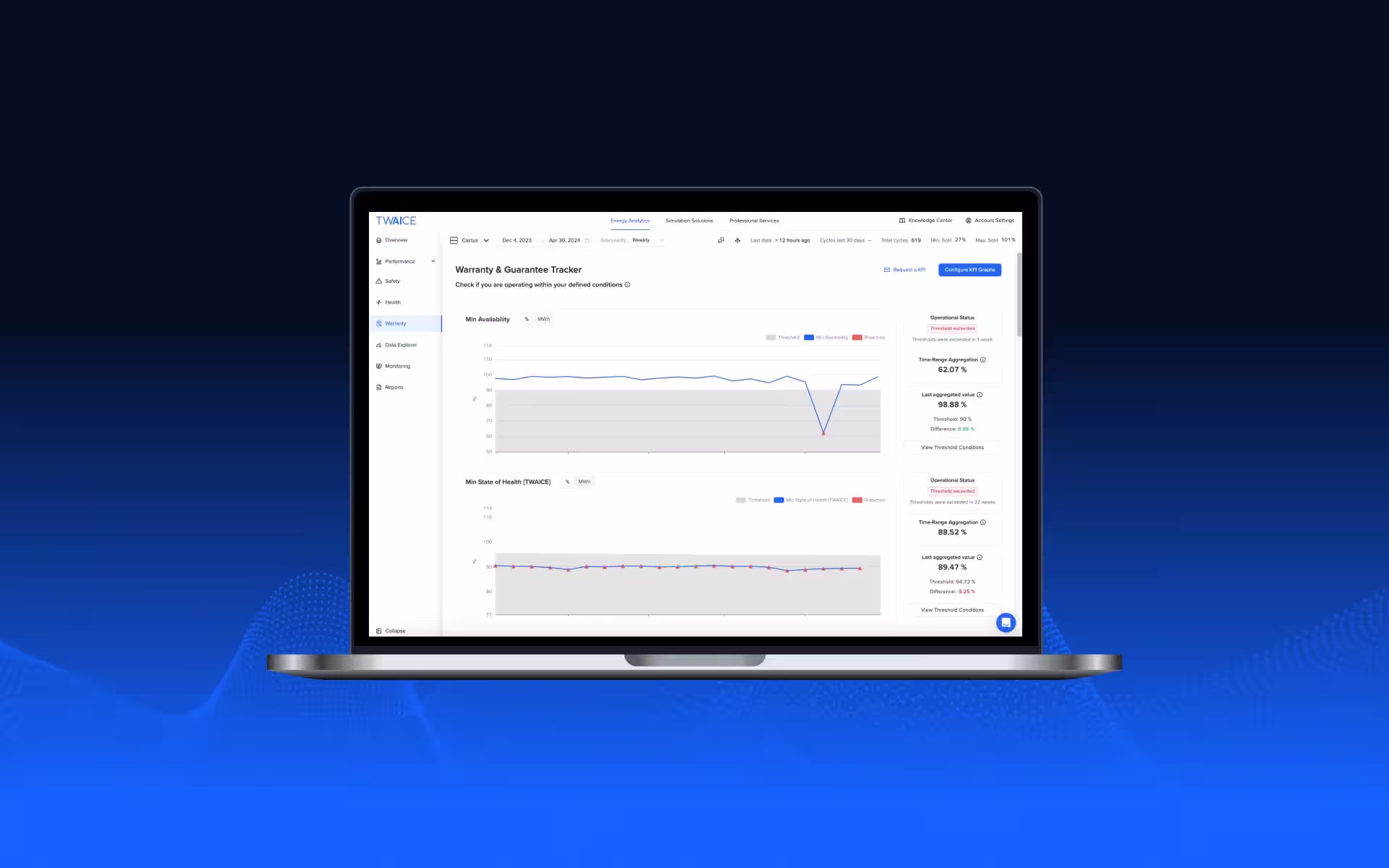 The Warranty and Guarantee tracker shows you exactly where breaches have occurred and using TWAICE Energy Analytics, you can find the root cause of any warranty breaches. (Of course, your Customer Success Manager can also help here!)